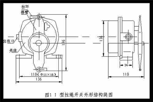 拉線開關是雙向觸動的,既可安裝在輸送機中間位置,也可安裝在其兩端: