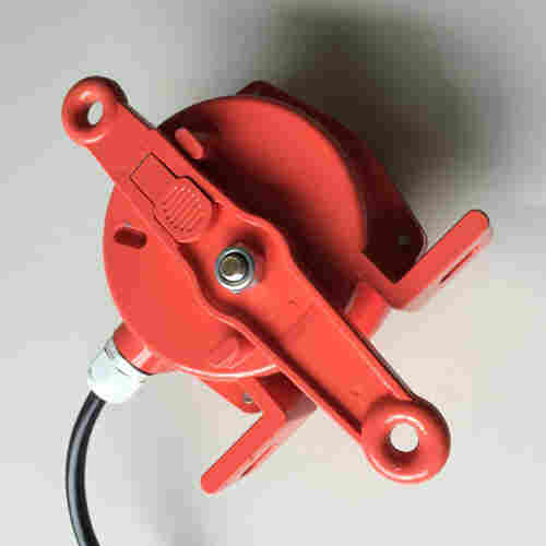 拉繩開(kāi)關(guān)用于皮帶機(jī)的緊急停機(jī),鋼絲繩一端固定在一個(gè)固定的吊環(huán)上,另一端固定在開(kāi)關(guān)臂桿上,開(kāi)關(guān)到固定端的距離通常不過(guò)30米,兩開(kāi)關(guān)之間的距離通常不過(guò)60米,向上向下或拉動(dòng)的力促使臂桿轉(zhuǎn)動(dòng)到了報(bào)警位置,觸動(dòng)微動(dòng)開(kāi)關(guān)并鎖定直到人工手動(dòng)復(fù)位。