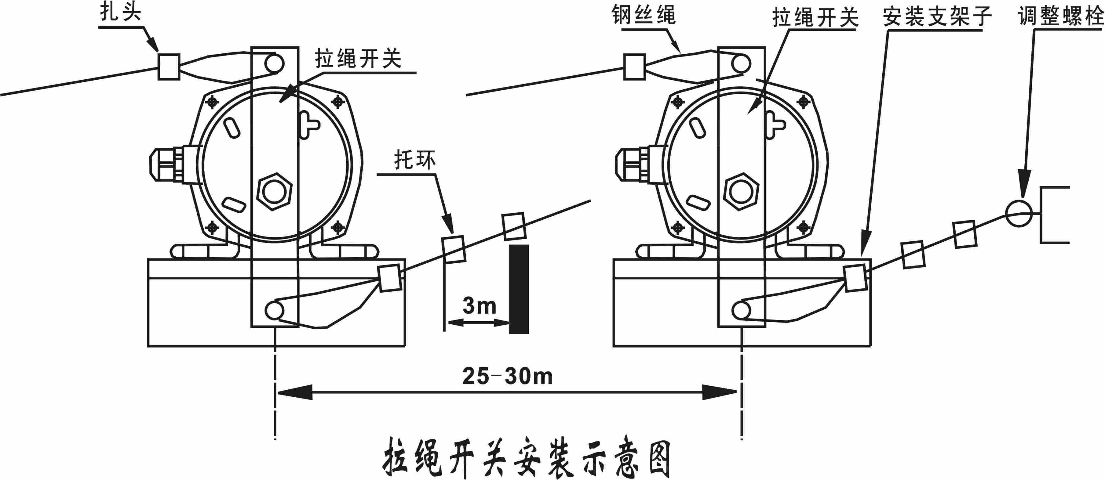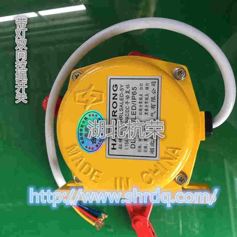 采用鋁合金精密壓鑄亮體,強度高,重量輕;外殼防護等級達IP67,可以惡劣壞境中長期工作;機內采用進口原件,觸電容量大,動作靈敏,可靠。由拉桿、復位柄、凸輪、鎖槽及微動開關等組成。 XLLS-X帶燈雙向接繩開關,拉繩跑偏開關,事故開關